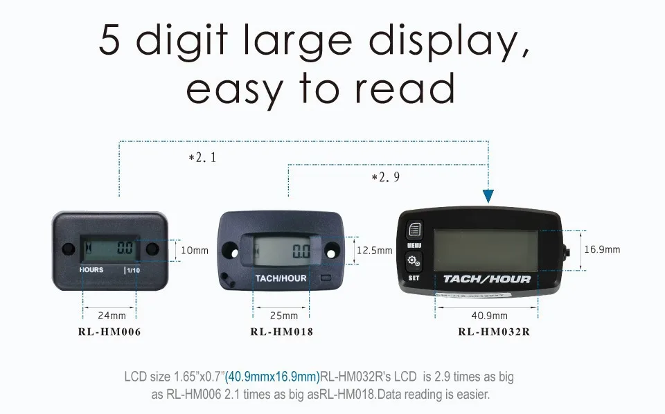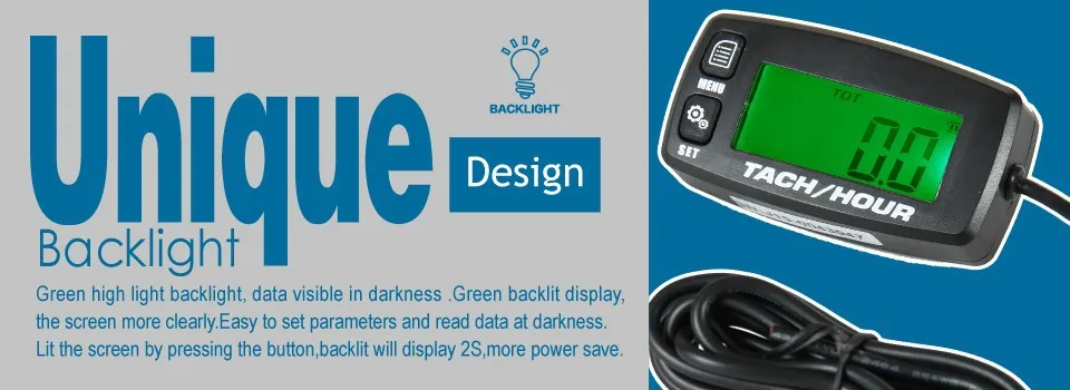Tachímetro/hora multifuncional com retroiluminação digital HM032R.Ele pode funcionar em qualquer motor a gás de 2 ou 4 tempos de até 8 cilindros. Possui um poderoso sistema de temporização, sistema de medição de RPM, bem como algum outro design de função exclusivo.